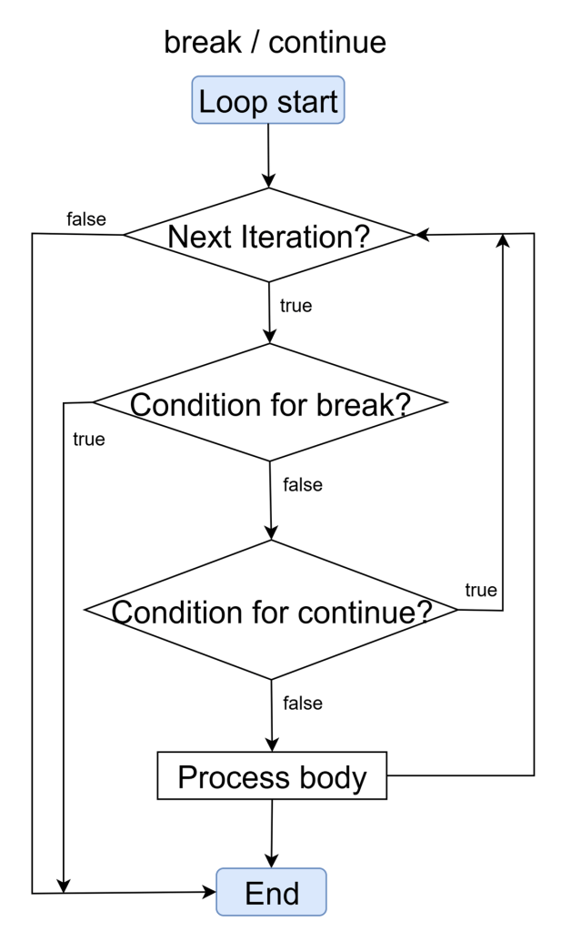 break / continue | Loop control | Affects nearest loop; consider labels sparingly |