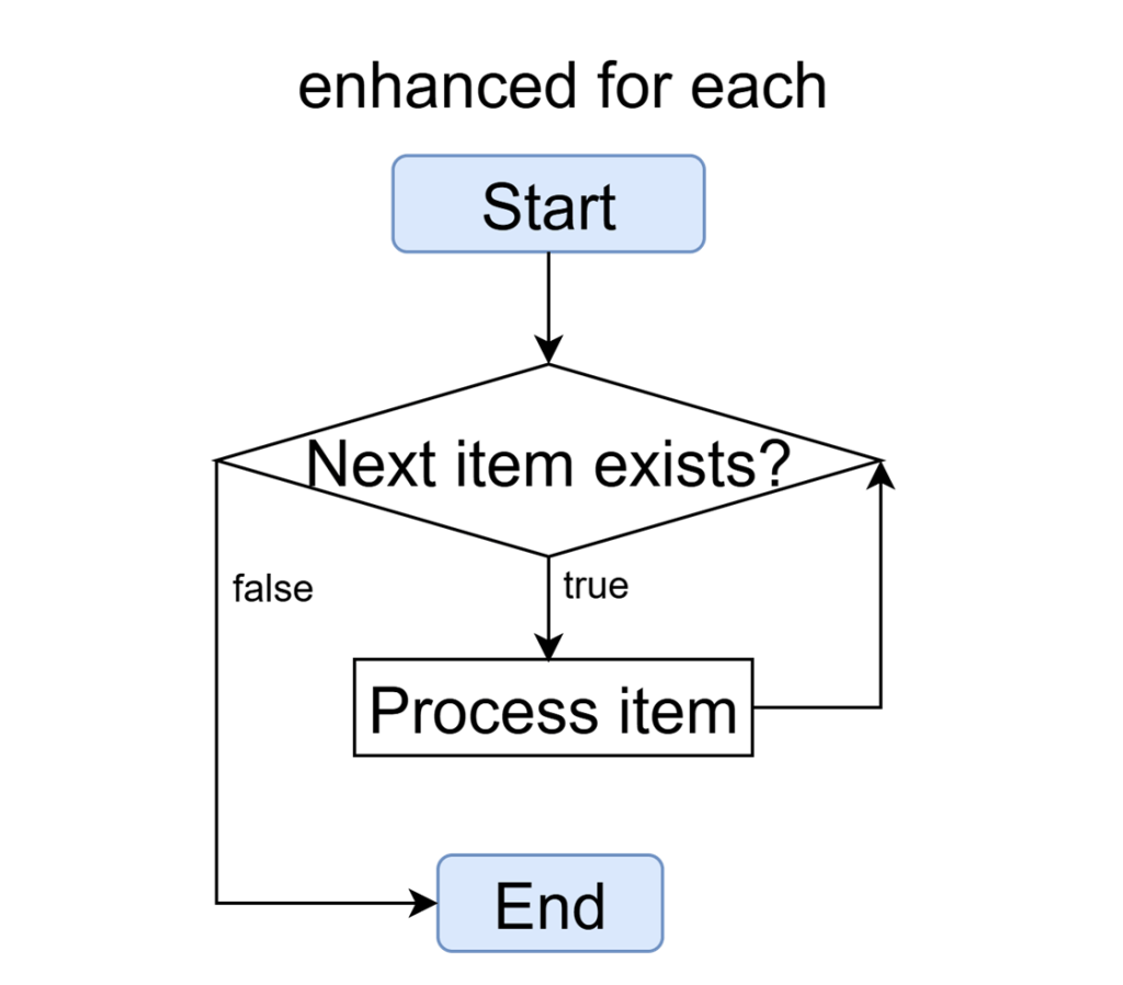 - Looping (iteration): for, enhanced for-each, while, do-while