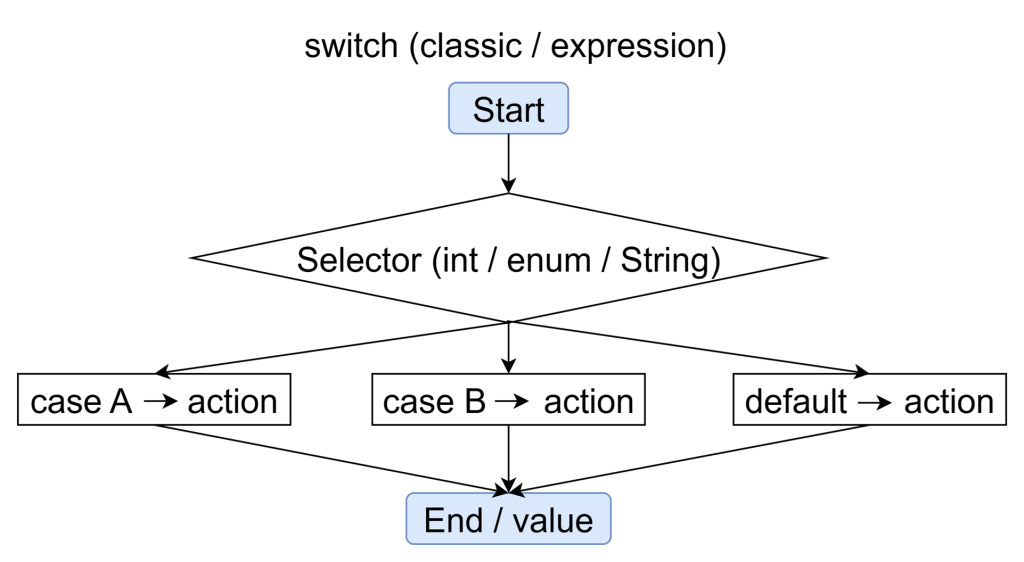 This guide explains each construct, when to use it, and common pitfalls—using Java 8+ syntax and the modern switch expression (Java 14+).